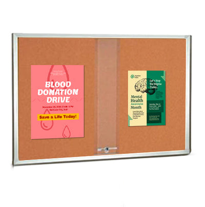 More than 60x30 Glass Bulletin Boards. We have it all; Large Outdoor Metal Framed Bulletin Board with Header, an Indoor Designer Wood Framed Cork Board with Lights, 1,2,3 and 4 door bulletin boards -- all types of custom cork boards, wall mount, free standing, enclosed, framed or frameless; call us for more details.