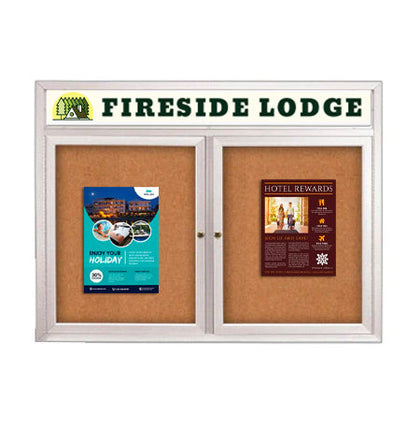 2 Door Bulletin Board Indoor Radius Display w Message Header