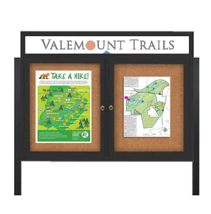 • Two Door Enclosed Bulletin Board 48x48 Radius Corners for Indoor Use