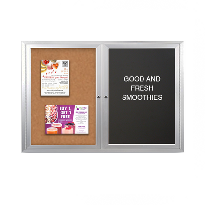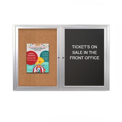 Enclosed 2-Door INDOOR Combo Board 60x40 | Cork Bulletin Board & FELT Letter Board