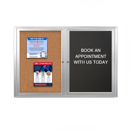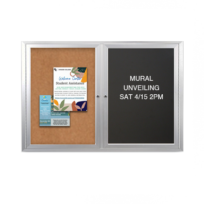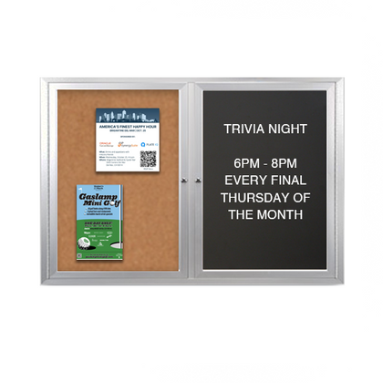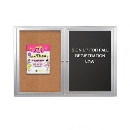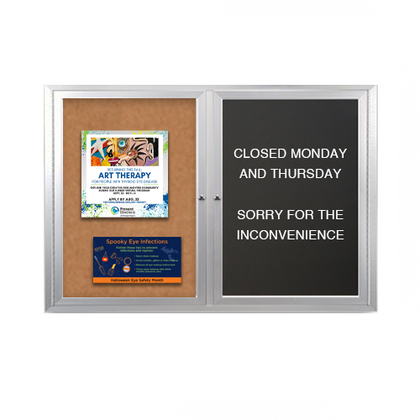 Enclosed 2-Door INDOOR Combo Board 40x50 | Cork Bulletin Board & FELT Letter Board