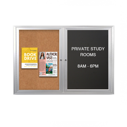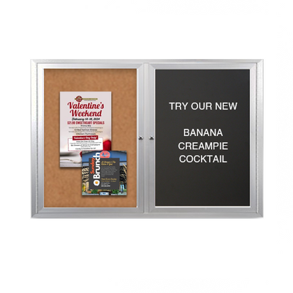 Enclosed 2-Door INDOOR Combo Board 60x30 | Cork Bulletin Board & FELT Letter Board