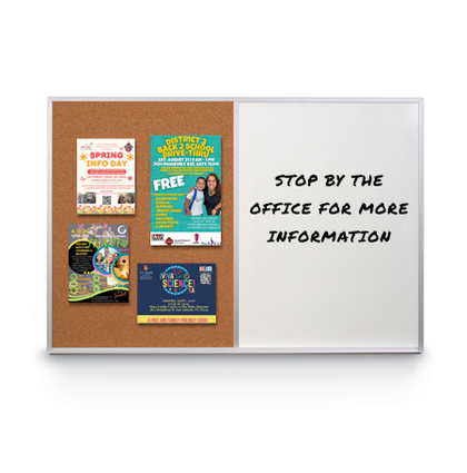 - Silver aluminum trim (1/2" WIDE) borders the combo board