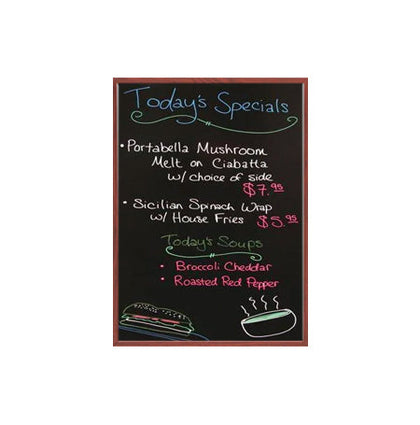 Black marker board has a handsome 1" wide wood frame border. The Open Face Black Marker Board is a great way to brainstorm, post messages, create announcements, or promote a product, service or event.