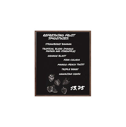 Black marker board has a handsome 1" wide wood frame border. The Open Face Black Marker Board is a great way to brainstorm, post messages, create announcements, or promote a product, service or event.
