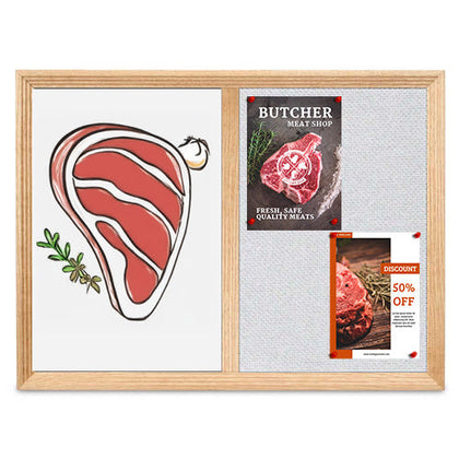 This multi-purpose dry erase cork bulletin combo board has an attractive 1 1/8" wide decorative wood trim border frame available in Cherry, Walnut or Light Oak. This open face combo board is ideal for writing notes, messages, and more while posting bulletins such as; fliers, posters, photos, restaurant menus, or any other posting, message or advertisements you wish to display.