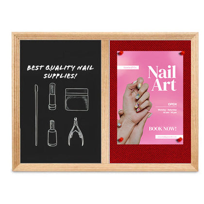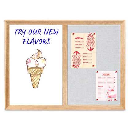 This multi-purpose dry erase cork bulletin combo board has an attractive 1 1/8" wide decorative wood trim border frame available in Cherry, Walnut or Light Oak. This open face combo board is ideal for writing notes, messages, and more while posting bulletins such as; fliers, posters, photos, restaurant menus, or any other posting, message or advertisements you wish to display.