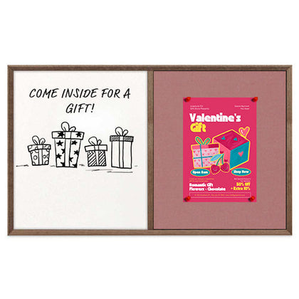 This multi-purpose dry erase cork bulletin combo board has an attractive 1 1/8" wide decorative wood trim border frame available in Cherry, Walnut or Light Oak. This open face combo board is ideal for writing notes, messages, and more while posting bulletins such as; fliers, posters, photos, restaurant menus, or any other posting, message or advertisements you wish to display.