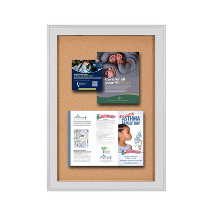 The self-healing bulletin cork board interior panel can be used to display various materials of your choosing. The natural cork board can be used with push pins and tacks. Optional vinyl covered cork is available in 5 colors to enhance your display case.
