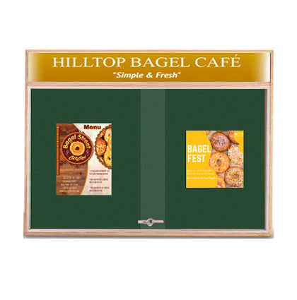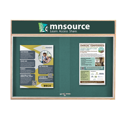 Sliding Glass Bulletin Boards feature your personalized header to attract even more attention to your graphics, messages, ads, and other printed announcements. Showcase the name of your University, School, Office, Business, Organization, Event, Product, Service, or anything you like with our Glass Enclosed Bulletin Board, 5-Inch White Vinyl Header Panel. The message board header is printed FREE.