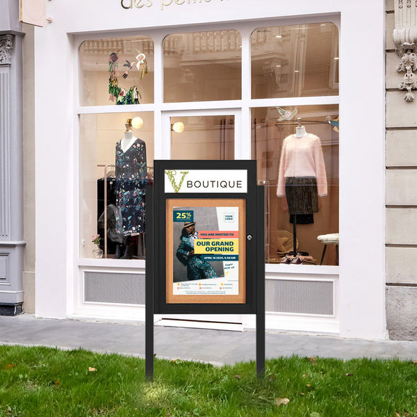 The single door provides a large viewable 36x36 display area. With its Interior LED Strip Lighting, the locking bulletin board cabinet is perfect for illuminating your Maps, Posters, Signage, Photos, Permits, Restaurant Menus, a multitude of messages or whatever else fits into the free standing outdoor message board.