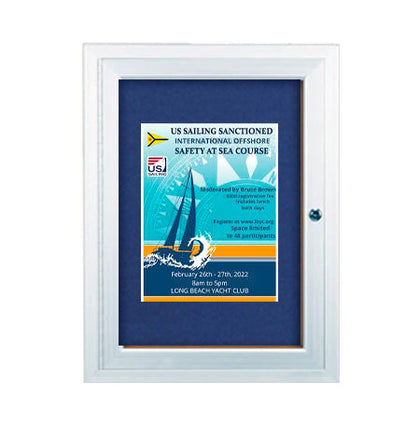 The aluminum display case is made for the indoors. The 24"x36" single door frame has a solid continuous hinge and is secured with a side tumbler lock to help prevent tampering. The display cabinet front door also features a shatterproof Lexan Polycarbonate window for clear message viewing.