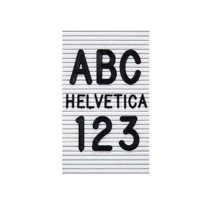 These reusable yellow plastic letters are in the standard Helvetica font. They are made to fit any manufacturer's 1/4" grooved letter boards, whether vinyl or felt.